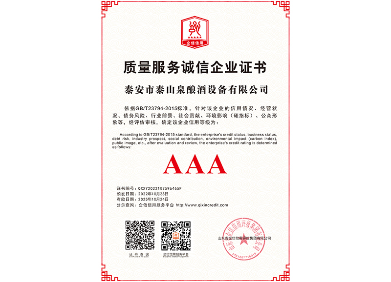 泰安市泰山泉釀酒設(shè)備有限公司,是一家專業(yè)從事釀酒設(shè)備機械化研發(fā)并集技術(shù)咨詢,工程設(shè)計,制造安裝,人員培訓(xùn)及售后服務(wù)為一體的綜合性企業(yè),本公司主要產(chǎn)品為:大曲清香、小曲清香、大曲醬香、大曲濃香等香型白酒機械化設(shè)備。  本公司與中國科學(xué)院自動化研究所簽訂技術(shù)服務(wù)合同,引進先進技術(shù),研究生產(chǎn)全自動化機械釀酒設(shè)備,由中國科學(xué)自動化研究所的技術(shù)支持,打造最先進的生產(chǎn)釀酒設(shè)備,公司有信心打造全國最先進白酒...